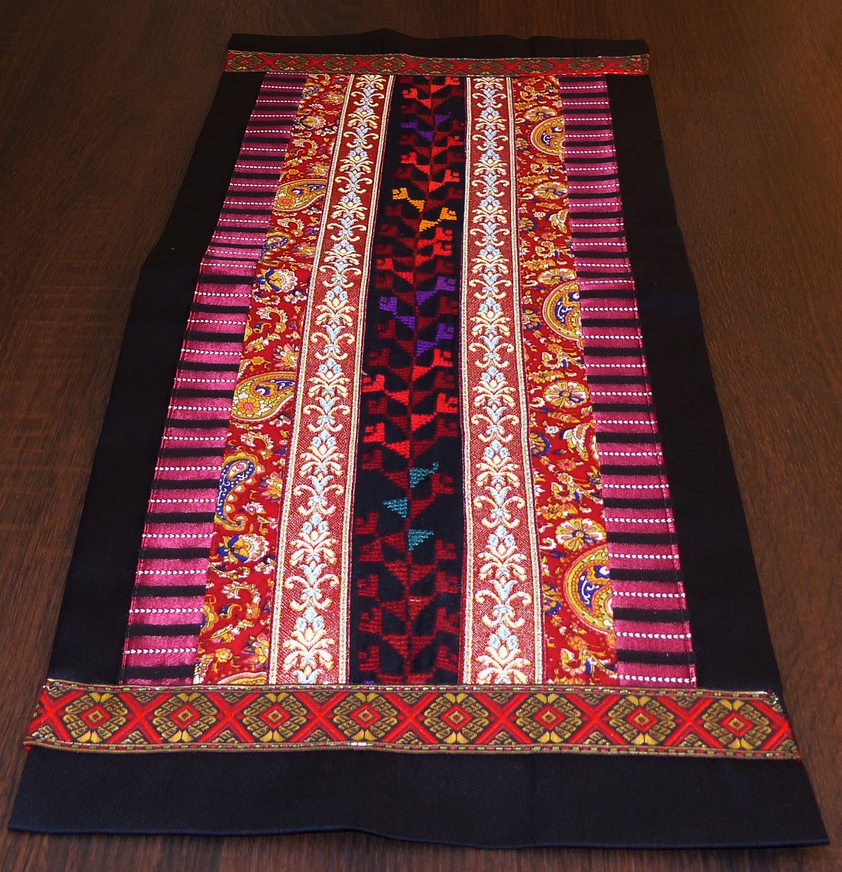 ראנר שילוב רקמה בעבודת יד,אריג וסרט קישוט.