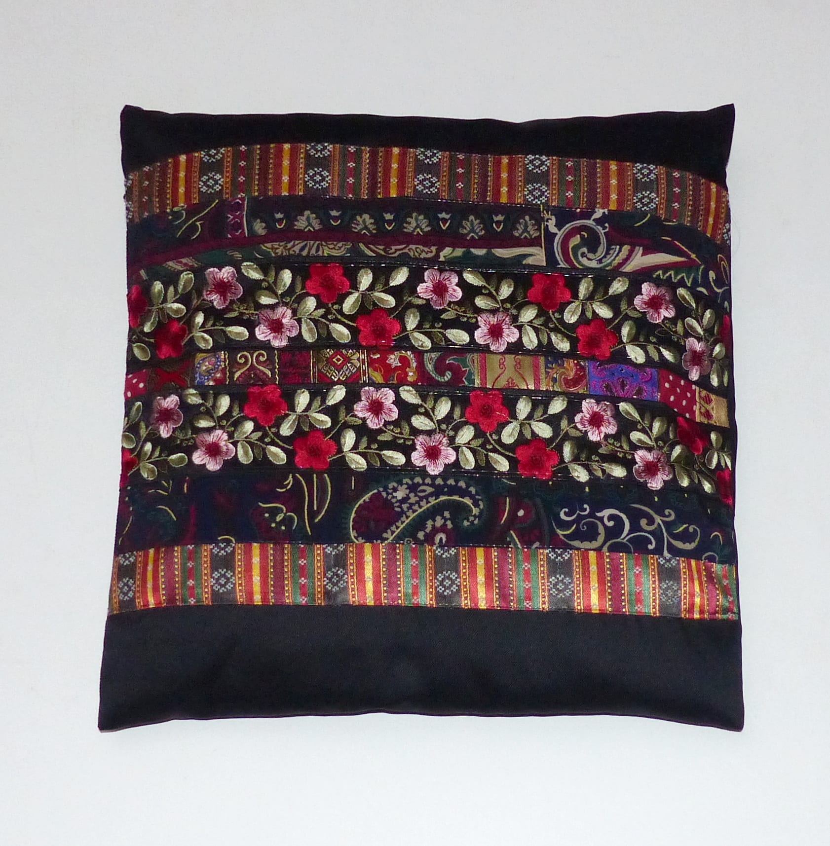 רקע:אריג כותנה שחורה,רוכסן בגב הכרית.