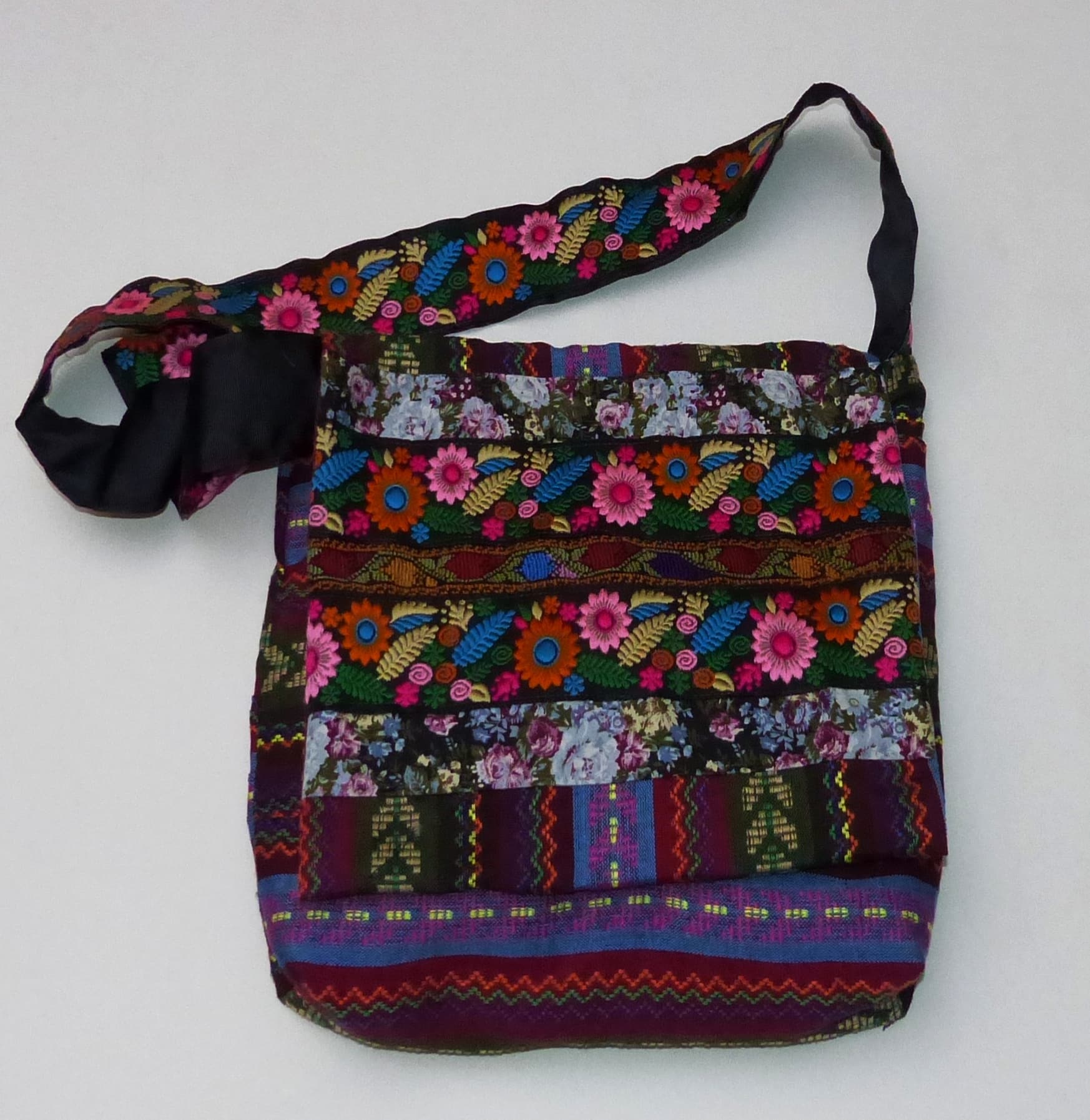 תיק צד עם כיסוי שילוב ריקמה בעבודת יד,אריג וסרט קישוט.
