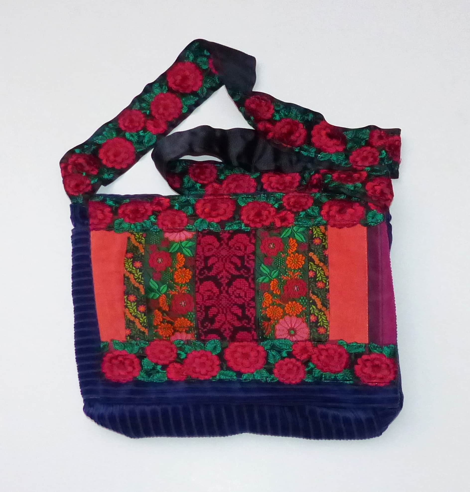 תיק צד עם כיסוי שילוב ריקמה בעבודת יד,אריג וסרט קישוט.